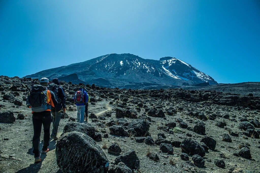 Today is short day of trekking. In the morning you will start climbing Barranco wall and reach 4200m for acclimatization and continue crossing ridges and valleys to Karanga campsite for hot lunch. After lunch you will have a bit of rest and get another acclimatization of trekking up the scree slopes towards the Southern ice field. You will then return to the camp for dinner and overnight.